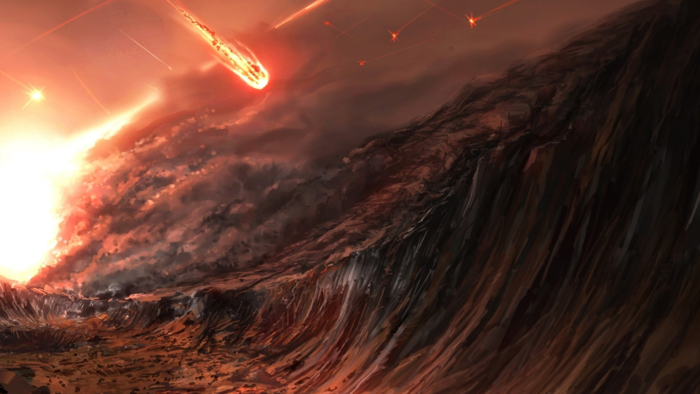 Обои 1366x768 арт, атмосфера, космос, лава, типы вулканических извержений, HD ready картинка