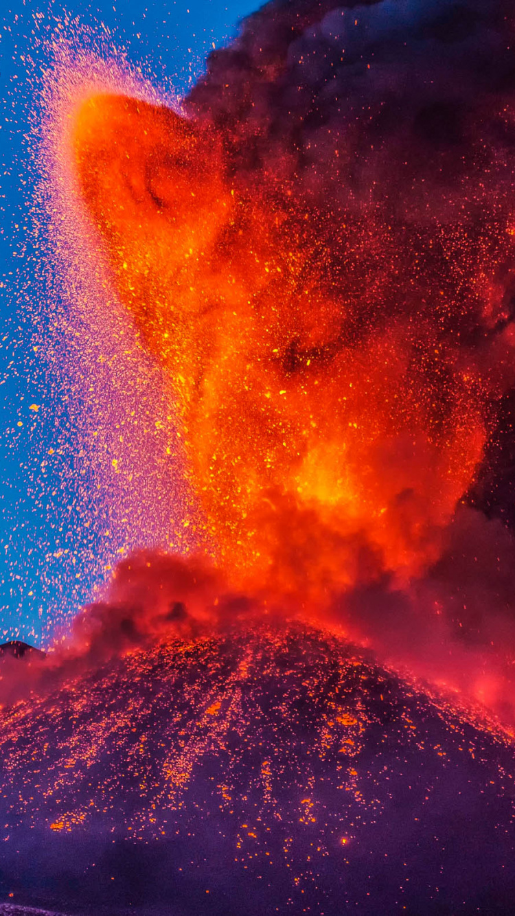 Обои вулкан, лава, щитовой вулкан, стратовулкан, купол лавы для iPhone 6, 6S, 7, 8, заставка, 750x1334 картинка