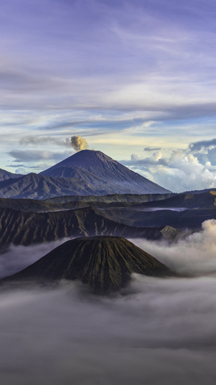 Обои Индонезия, вулкан, горный хребет, пейзажи гор, природа для iPhone 6, 6S, 7, 8, заставка, 750x1334 картинка