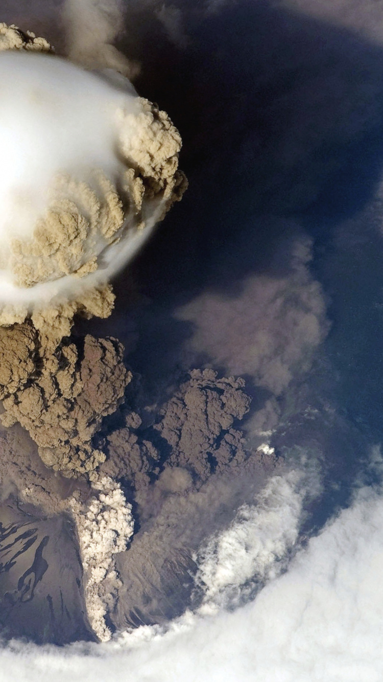 Обои вулкан, земля, атмосфера, облако, космос для iPhone 6, 6S, 7, 8, заставка, 750x1334 картинка