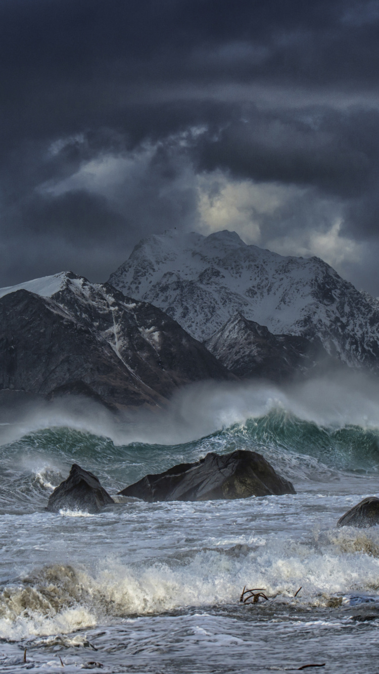 Обои Лофотен, море, природа, волна, вода для iPhone 6, 6S, 7, 8, заставка, 750x1334 картинка