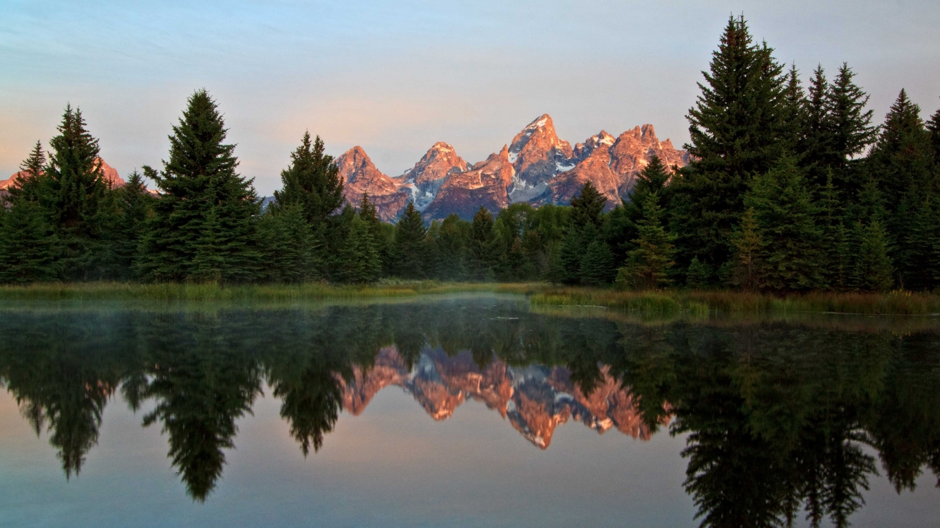 Обои 1366x768 национальный парк Гранд титон, национальный парк, парк, отражение, природа, HD ready картинка