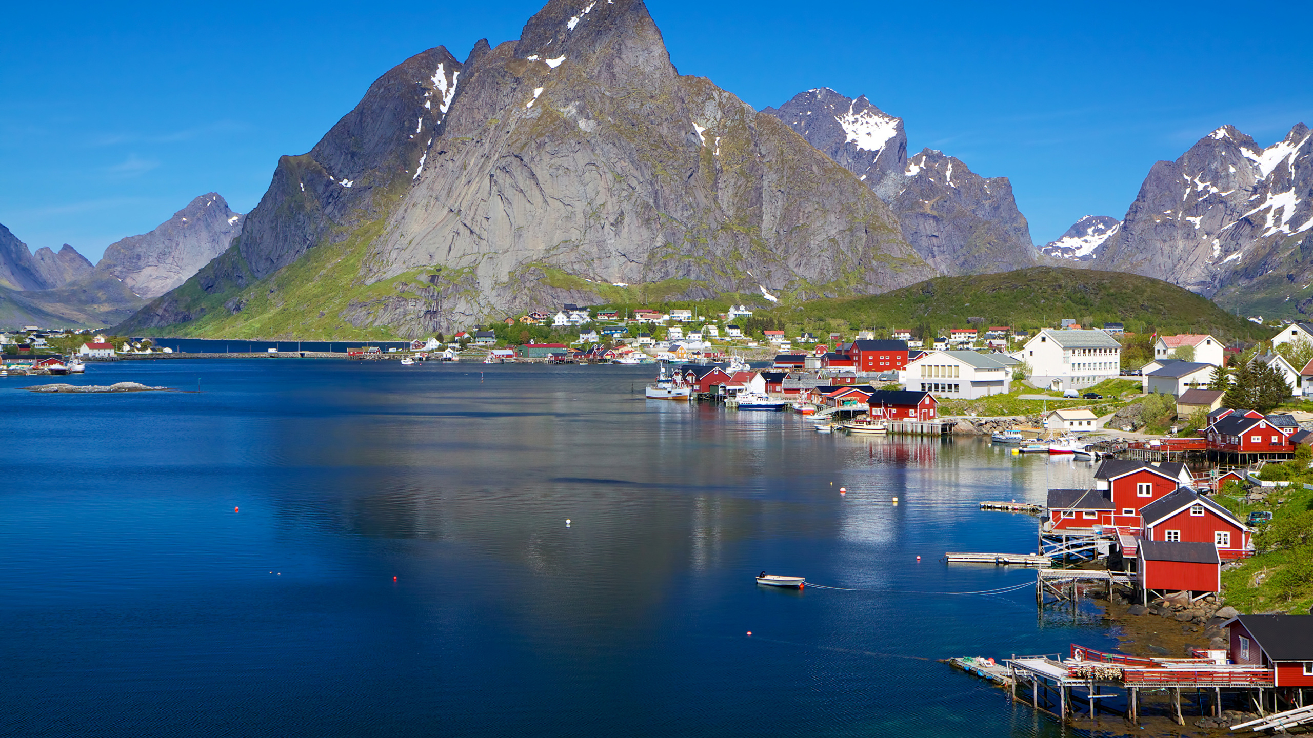Обои 2560x1440 фьорд, Лофотен, рыбацкая деревня, горный рельеф, гора, WQHD, QHD, 16:9 картинка