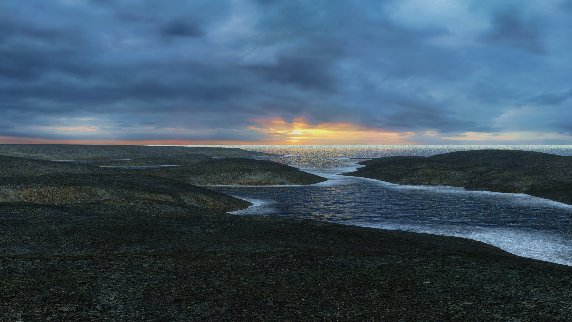 Обои 1920x1080 горизонт, небо, окно, тундра, озеро, Full HD, HDTV, 1080p 16:9 картинка