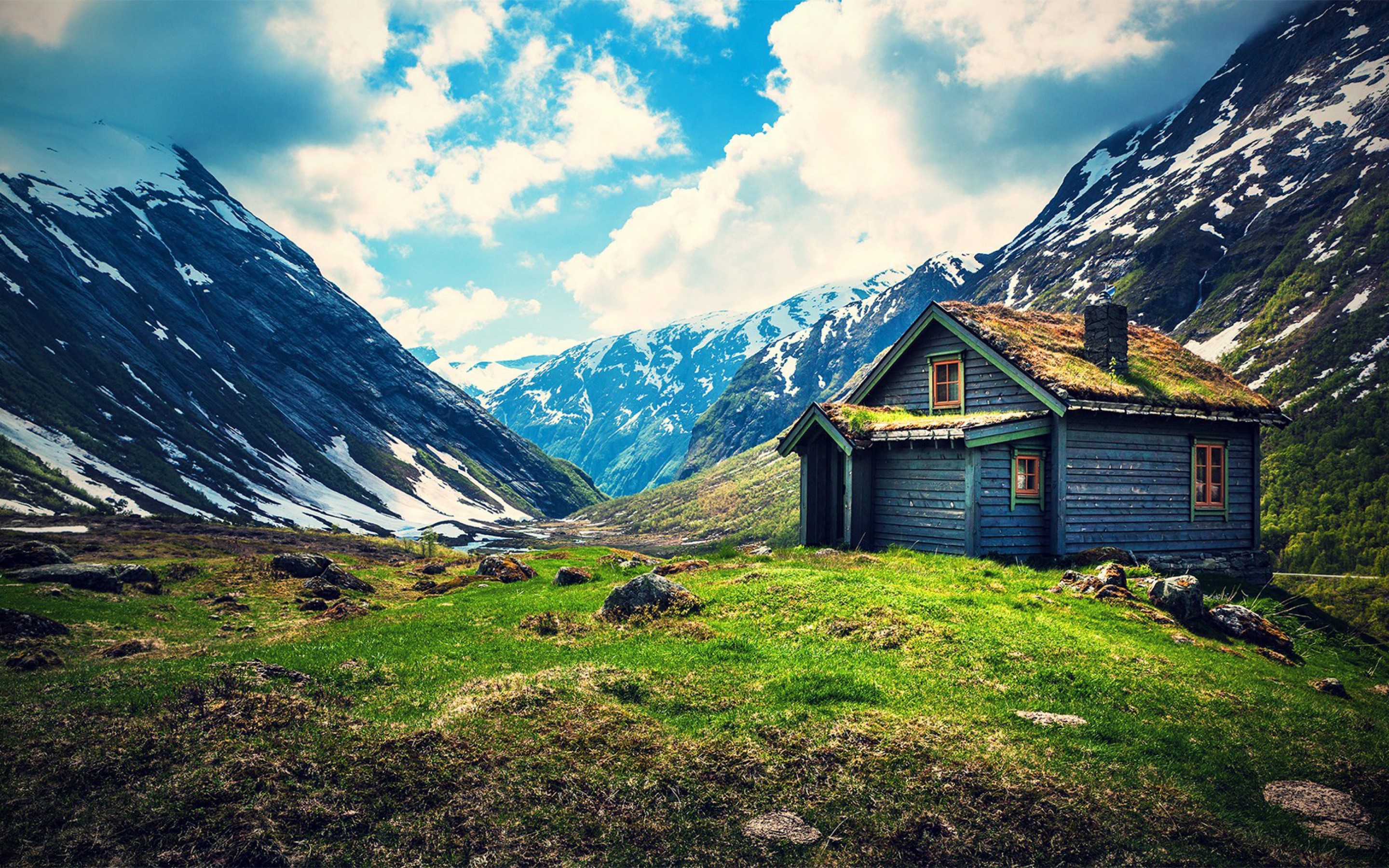 Обои коттедж, гора, хижина, Дом Горы, горной хижине, фото, заставка