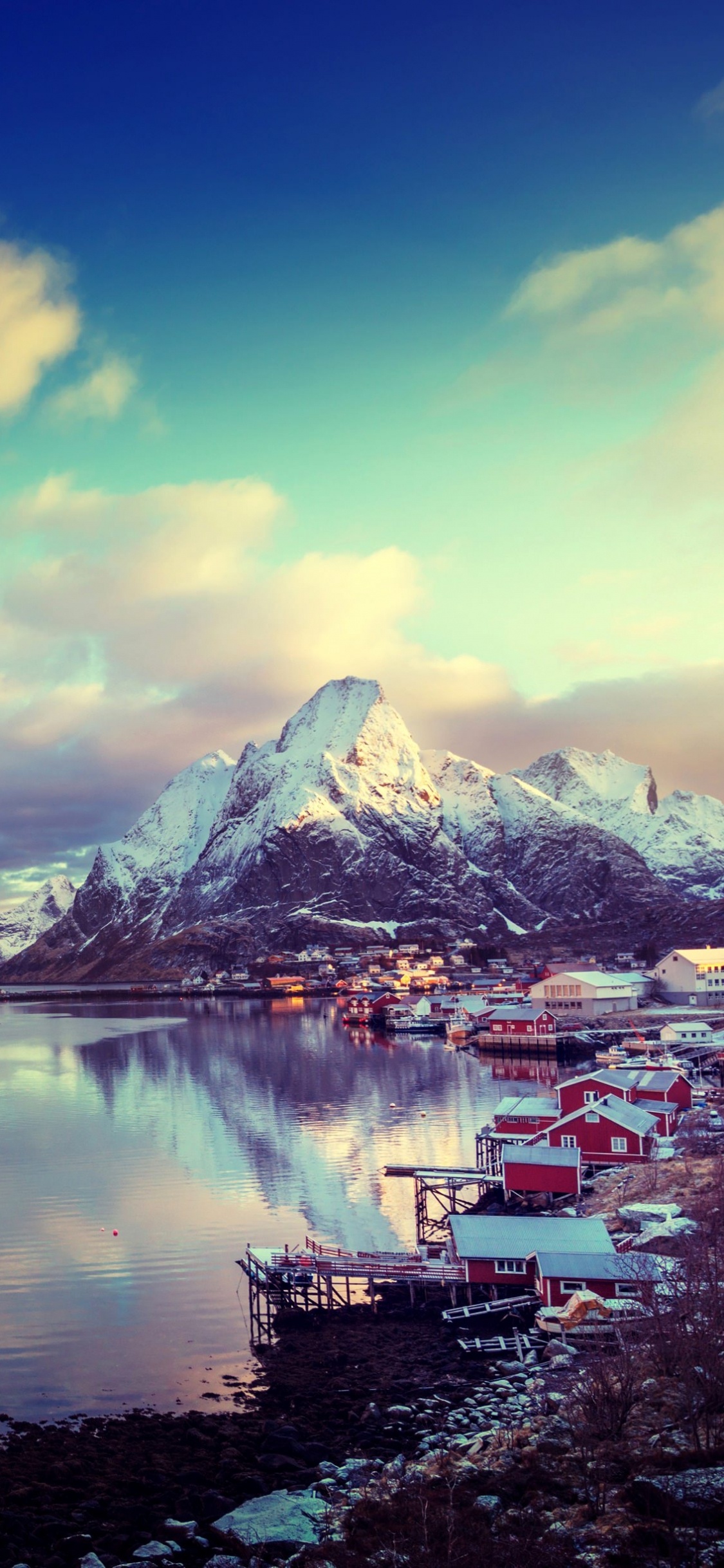 Обои Лофотен, фьорд, зима, природный ландшафт, гора для iPhone X / XS, заставка, 1125x2436 картинка