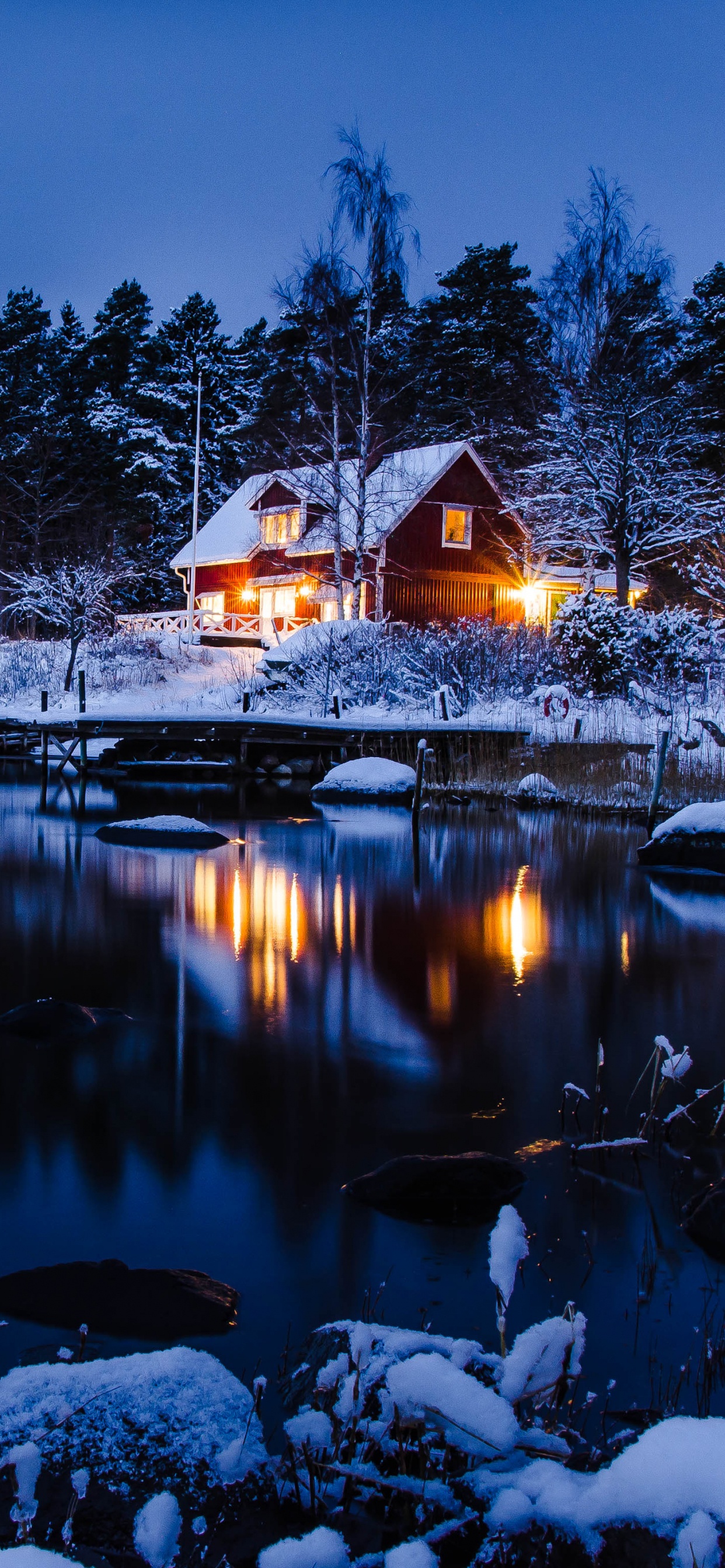 Обои Стокгольм, снег, зима, отражение, природа для iPhone XS Max, заставка, 1242x2688 картинка
