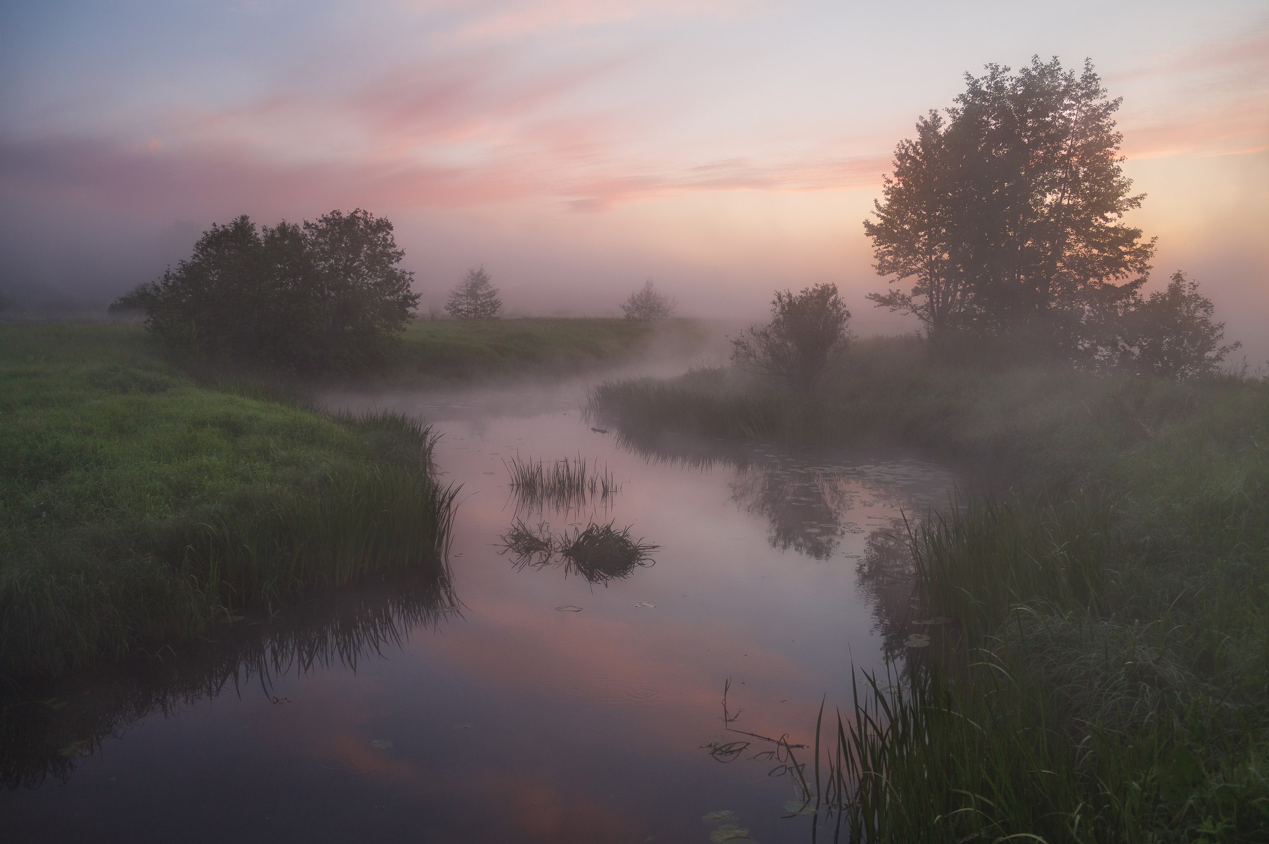 Обои отражение, Дубна, рассвет, пейзажная живопись, природа, фото, заставка