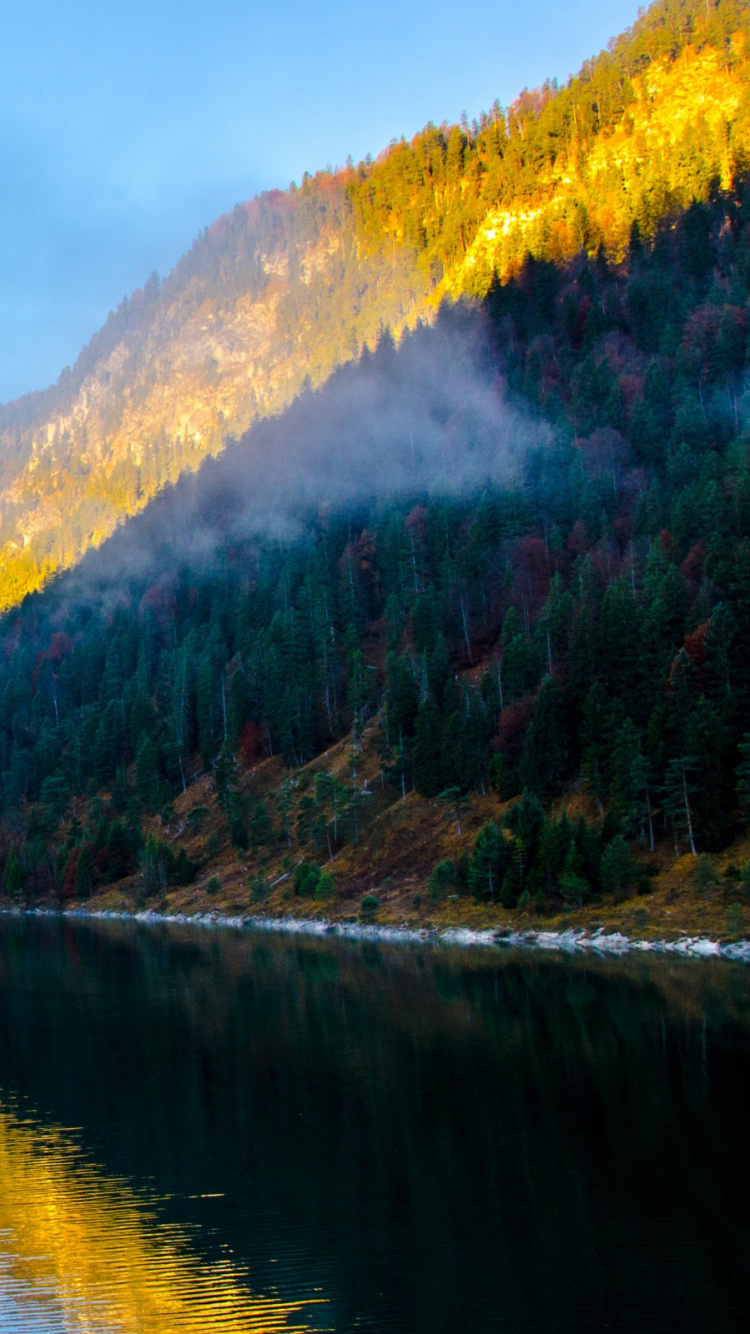 Обои телевизор, природа, отражение, гора, фьорд для iPhone 6, 6S, 7, 8, заставка, 750x1334 картинка
