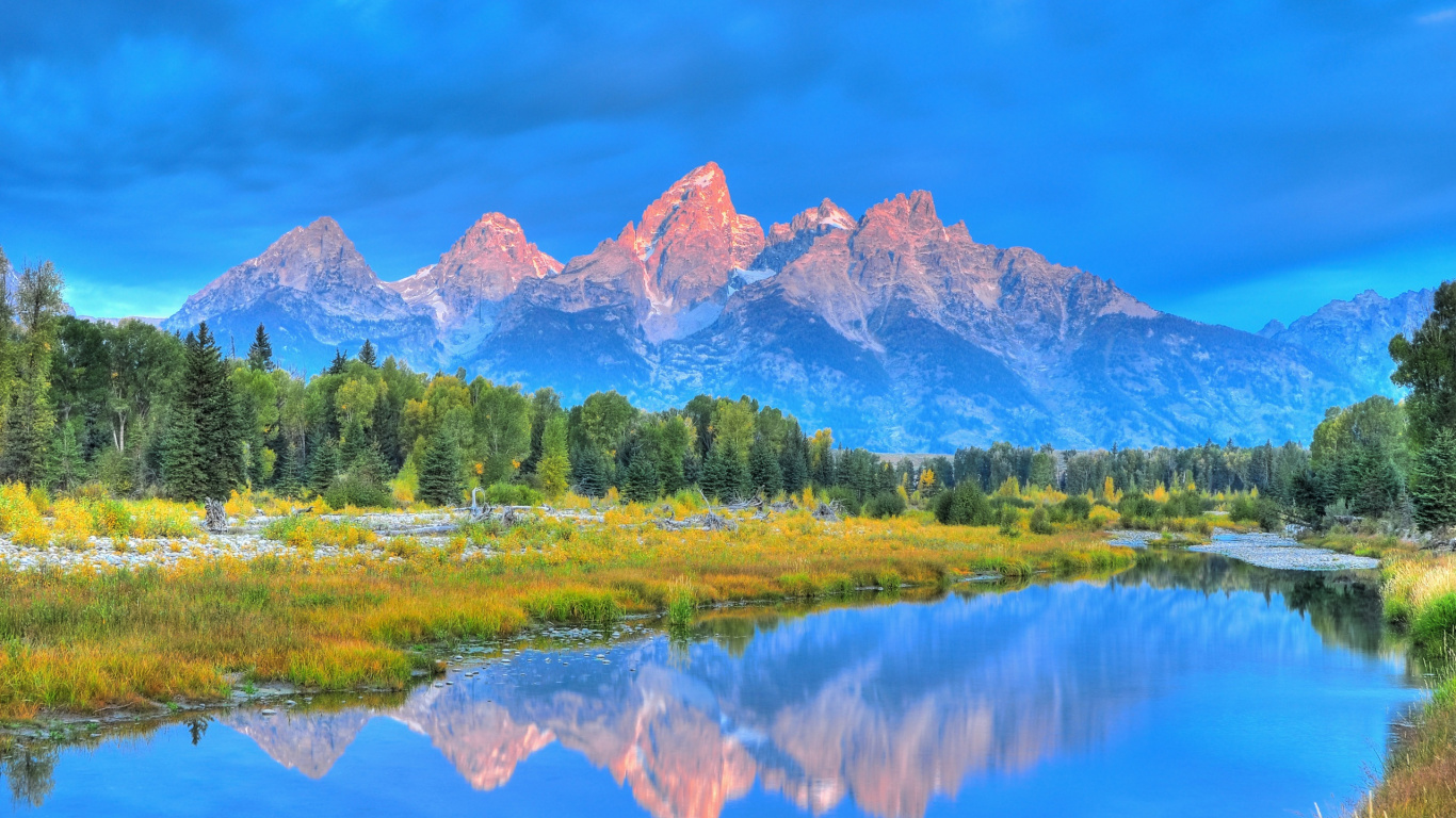 Обои 1366x768 национальный парк Гранд титон, Йеллоустонский Национальный парк, национальный парк, природный заповедник, парк, HD ready картинка