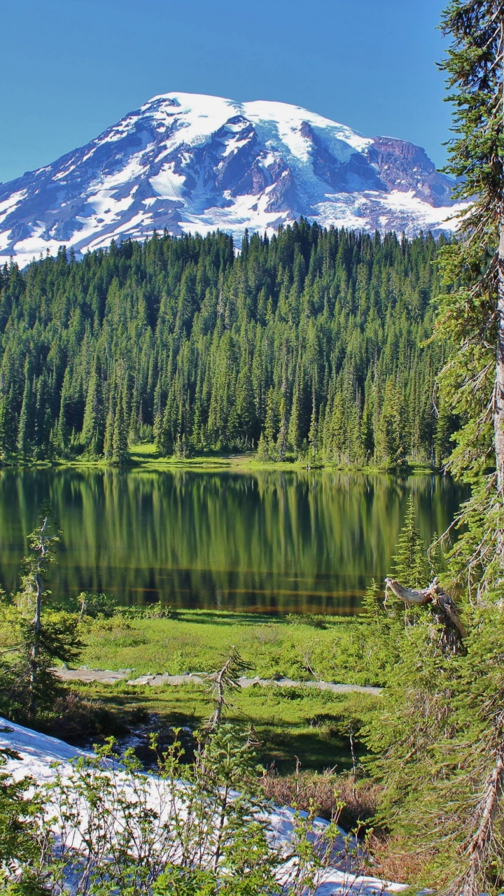 Обои гора, дикая местность, природа, озеро, лес для HD Samsung Galaxy S3/J3/J4/J5, Meizu M5, Sony Xperia L1/L2, заставка, 720x1280 картинка