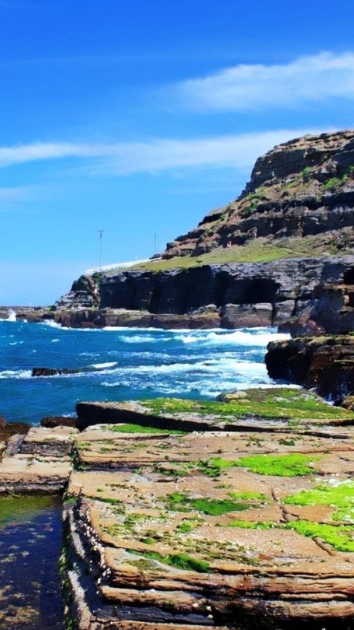Обои побережье, море, плащ, природа, обрыв для HD Samsung Galaxy S3/J3/J4/J5, Meizu M5, Sony Xperia L1/L2, заставка, 720x1280 картинка