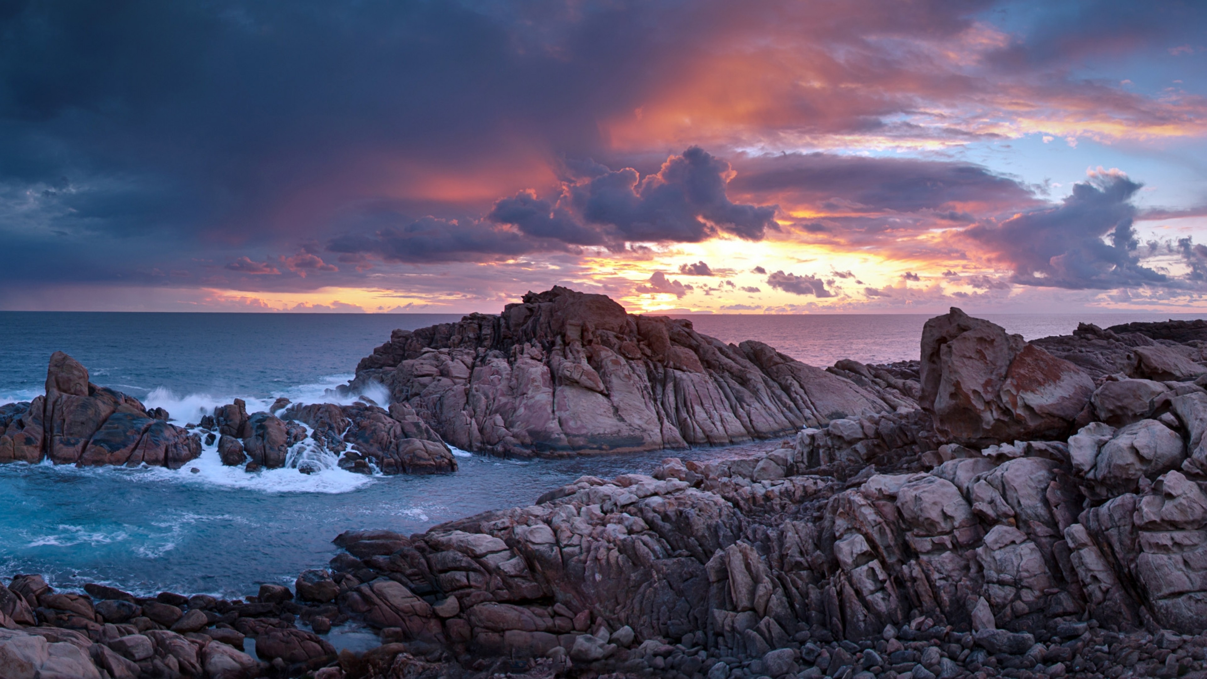 Обои 3840x2160 море, рок, океан, горизонт, побережье, 4K Ultra HD картинка
