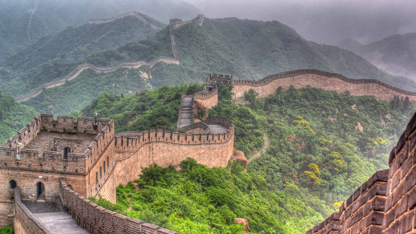 Обои 1366x768 великая Китайская стена, стена, ориентир, горная станция, фортификация, HD ready картинка