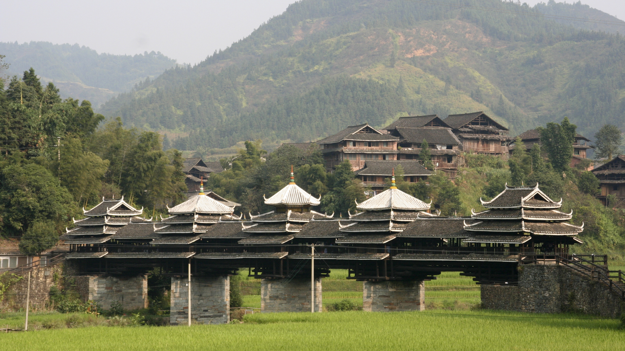 Обои 2560x1440 Мост Чэнъян, мост, Кам людей, горная станция, гора, WQHD, QHD, 16:9 картинка