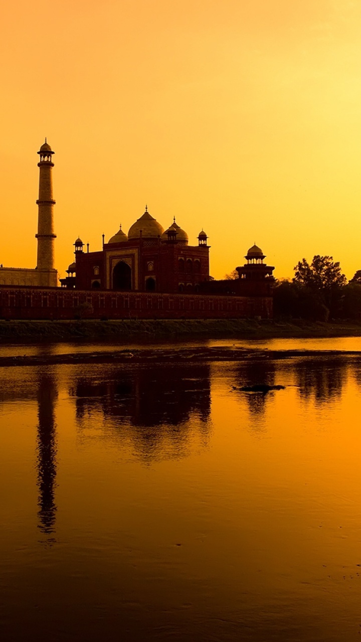 Обои Тадж-Махал, памятник, отражение, ориентир, утро для HD Samsung Galaxy S3/J3/J4/J5, Meizu M5, Sony Xperia L1/L2, заставка, 720x1280 картинка
