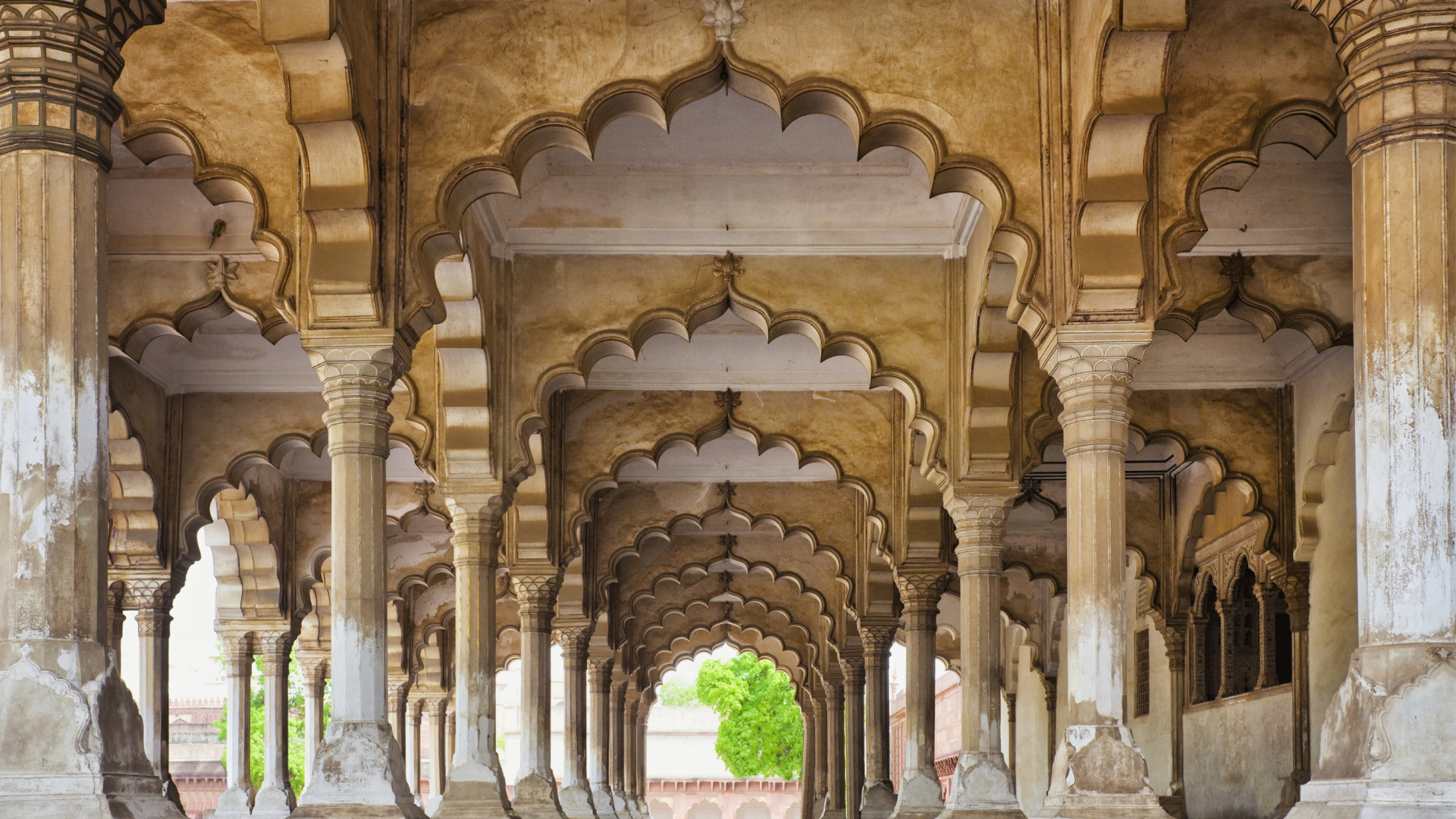Обои 1920x1080 Агра Форт, Тадж-Махал, Мехтаб Багх, арка, аркада, Full HD, HDTV, 1080p 16:9 картинка