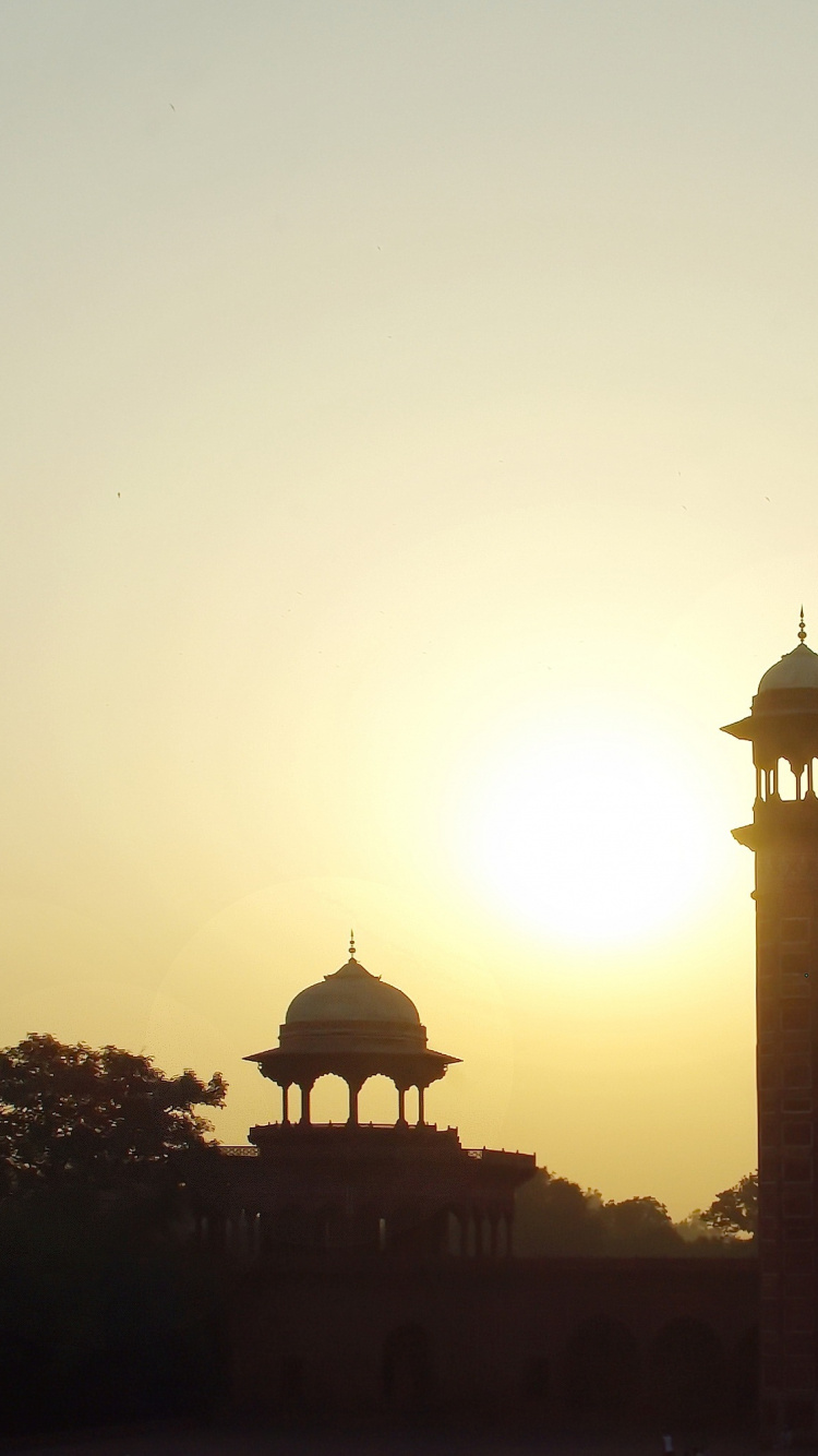 Обои Тадж-Махал, памятник, утро, закат, восход солнца для iPhone 6, 6S, 7, 8, заставка, 750x1334 картинка
