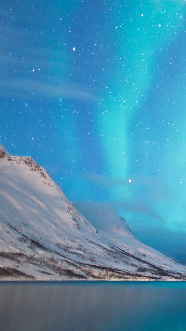 Обои полярные горы, гора, Аврора, природа, ледяная форма для HD Samsung Galaxy S3/J3/J4/J5, Meizu M5, Sony Xperia L1/L2, заставка, 720x1280 картинка