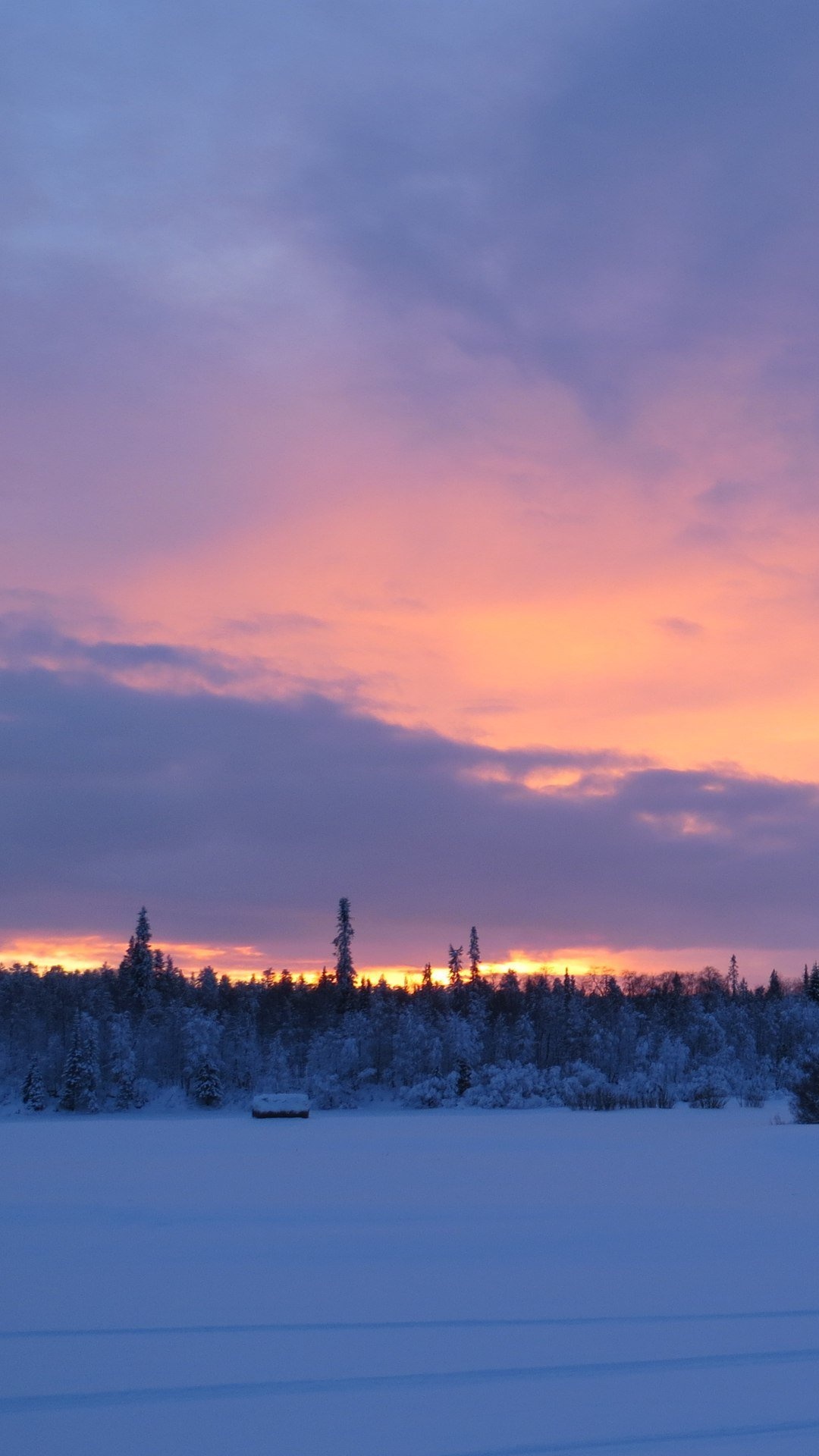 Обои пейзажная живопись, дневное время, утро, закат, снег для iPhone 6S+/7+/8+, заставка, 1080x1920 картинка