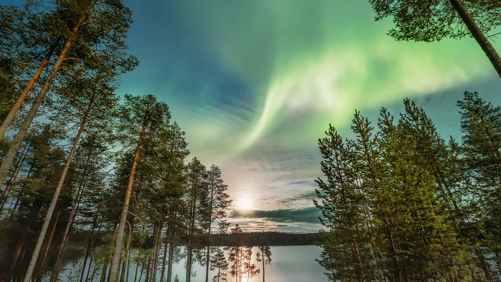 Обои 1920x1080 природа, Радуга, дерево, Аврора, отражение, Full HD, HDTV, 1080p 16:9 картинка