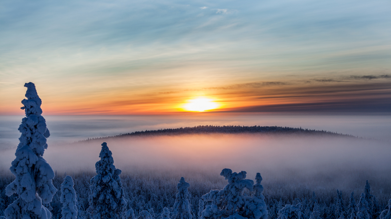 Обои 1366x768 природа, восход солнца, горизонт, утро, зима, HD ready картинка