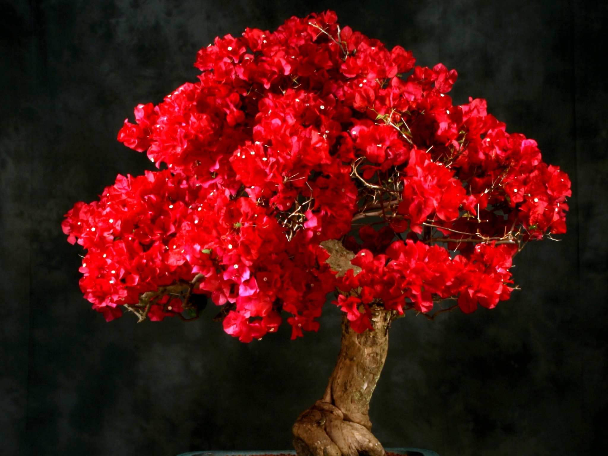 Обои бонсай, цветковое растение, дерево, красный цвет, комнатное растение, фото, заставка