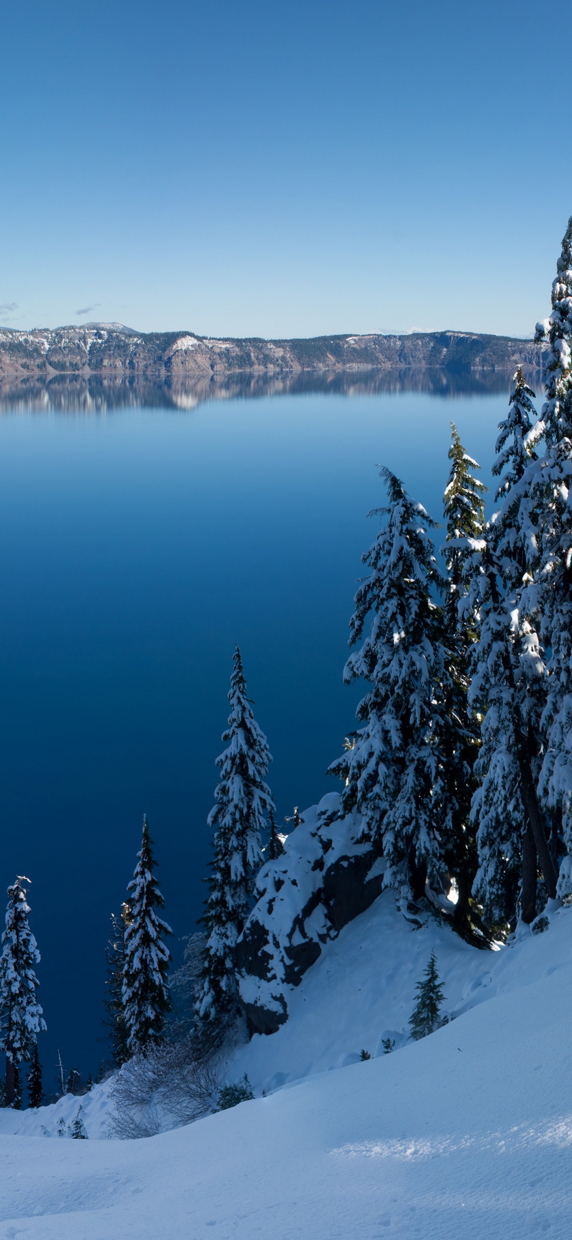 Обои озеро, снег, зима, природа, гора для iPhone X / XS, заставка, 1125x2436 картинка