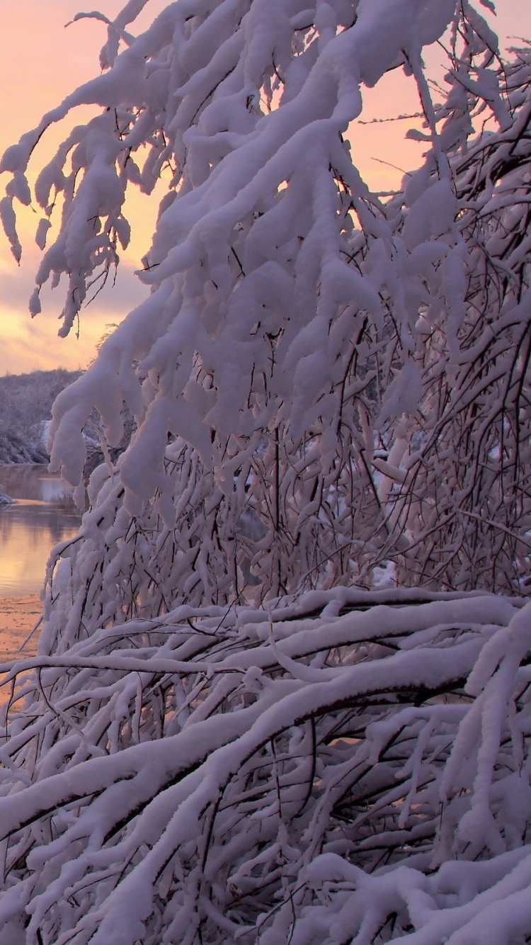 Обои снег, закат, зима, природа, дерево для iPhone 6, 6S, 7, 8, заставка, 750x1334 картинка