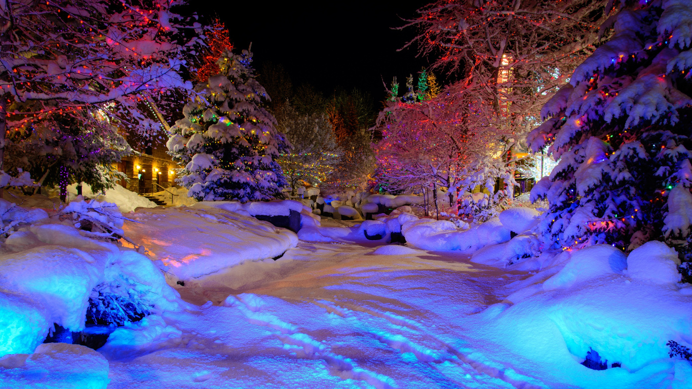 Обои 1366x768 зима, природа, снег, освещение, свет, HD ready картинка