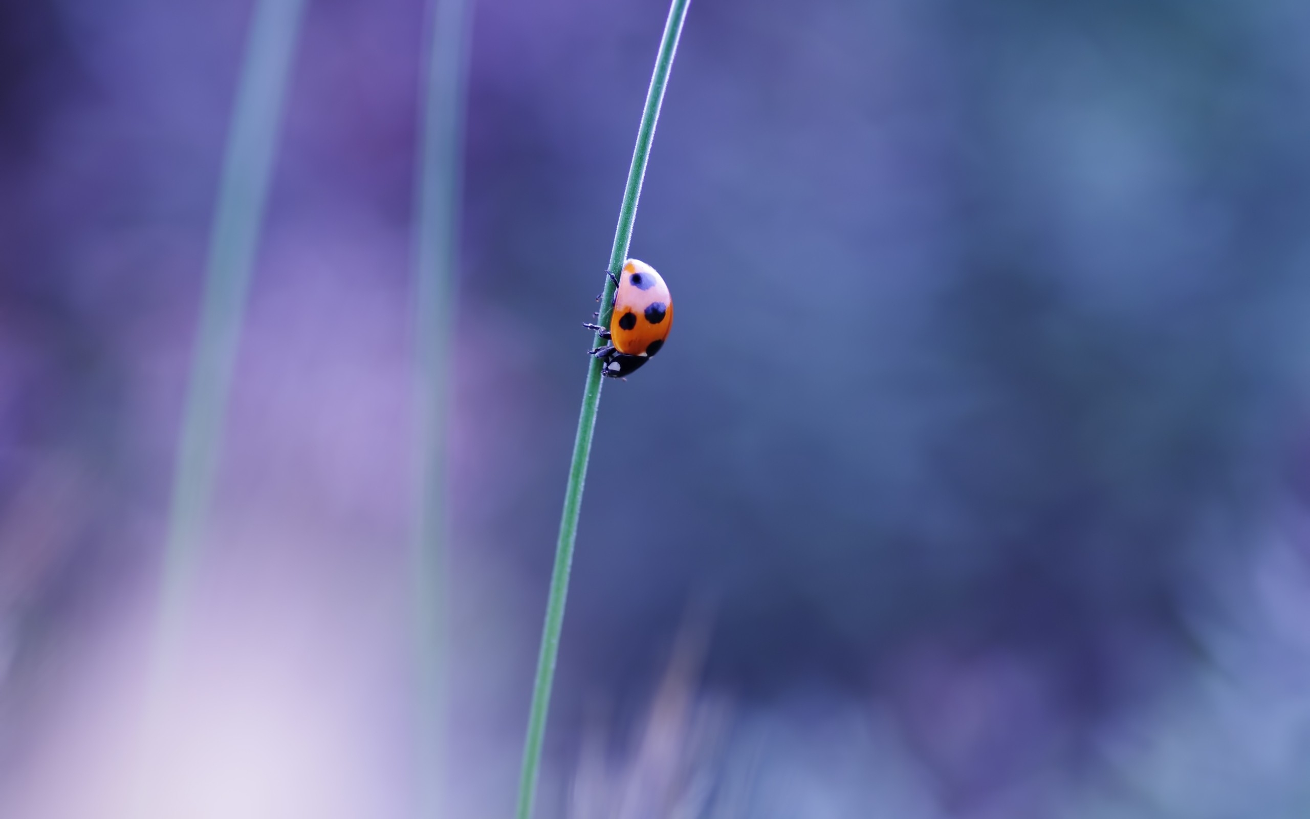 Обои насекомое, вода, стебель растения, макросъемка, стебель, фото, заставка