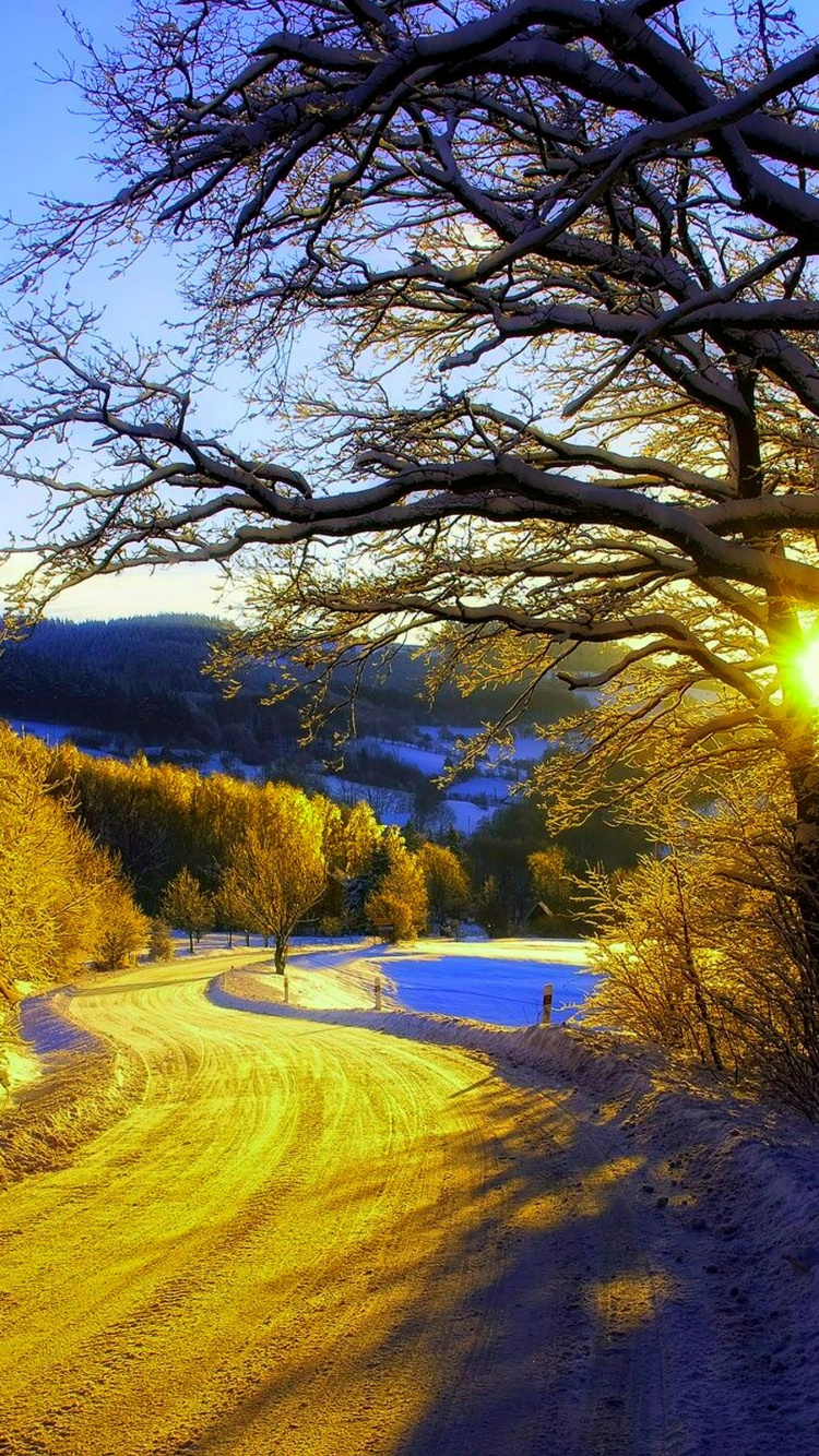 Обои зима, снег, закат, утро, природа для iPhone 6, 6S, 7, 8, заставка, 750x1334 картинка