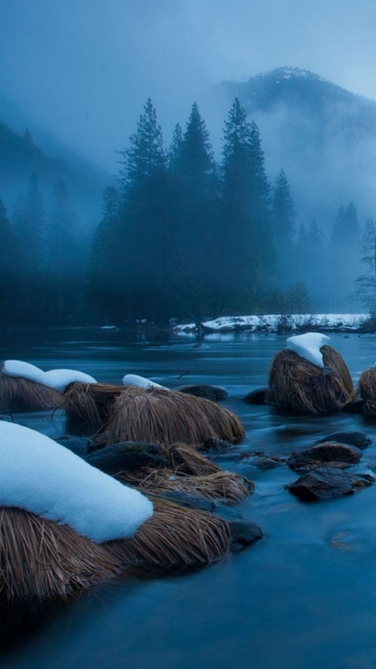 Обои природа, зима, вода, отражение, замораживание для iPhone 6, 6S, 7, 8, заставка, 750x1334 картинка