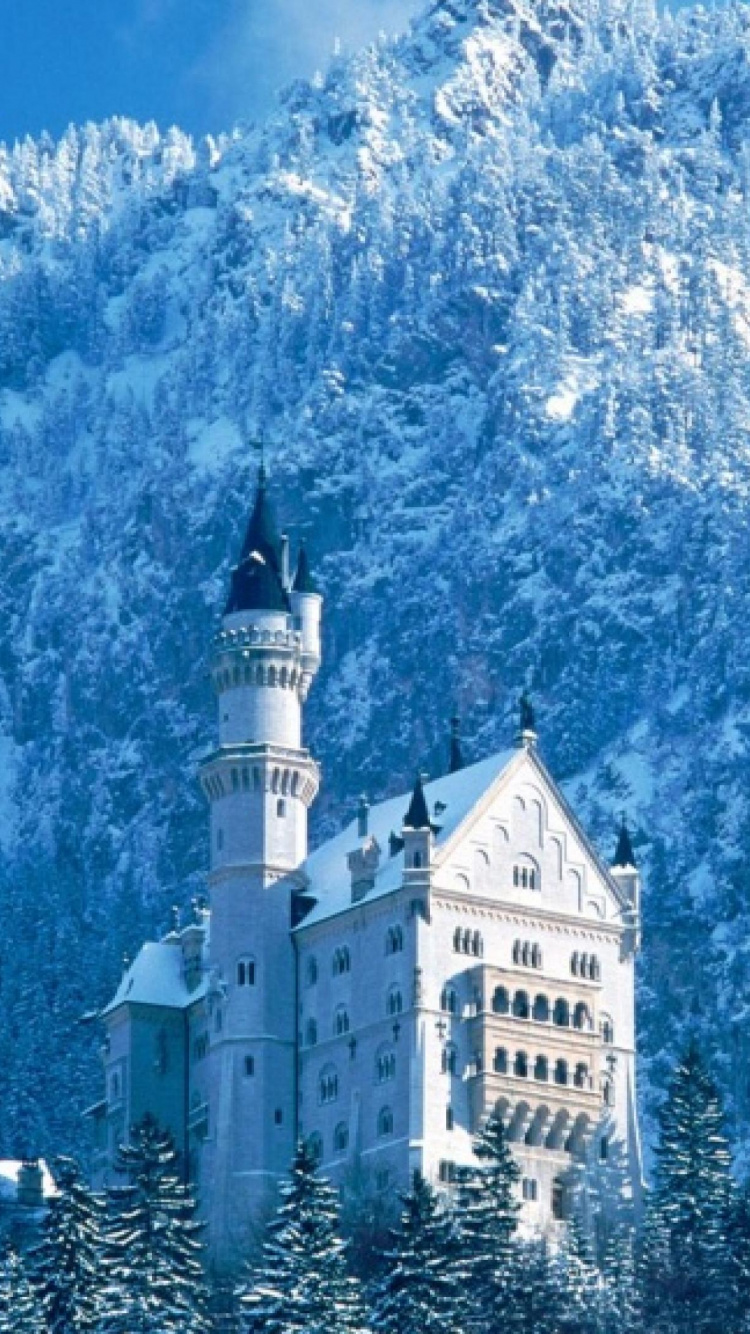 Обои замок Нойшванштайн, замок, зима, ориентир, природа для iPhone 6, 6S, 7, 8, заставка, 750x1334 картинка