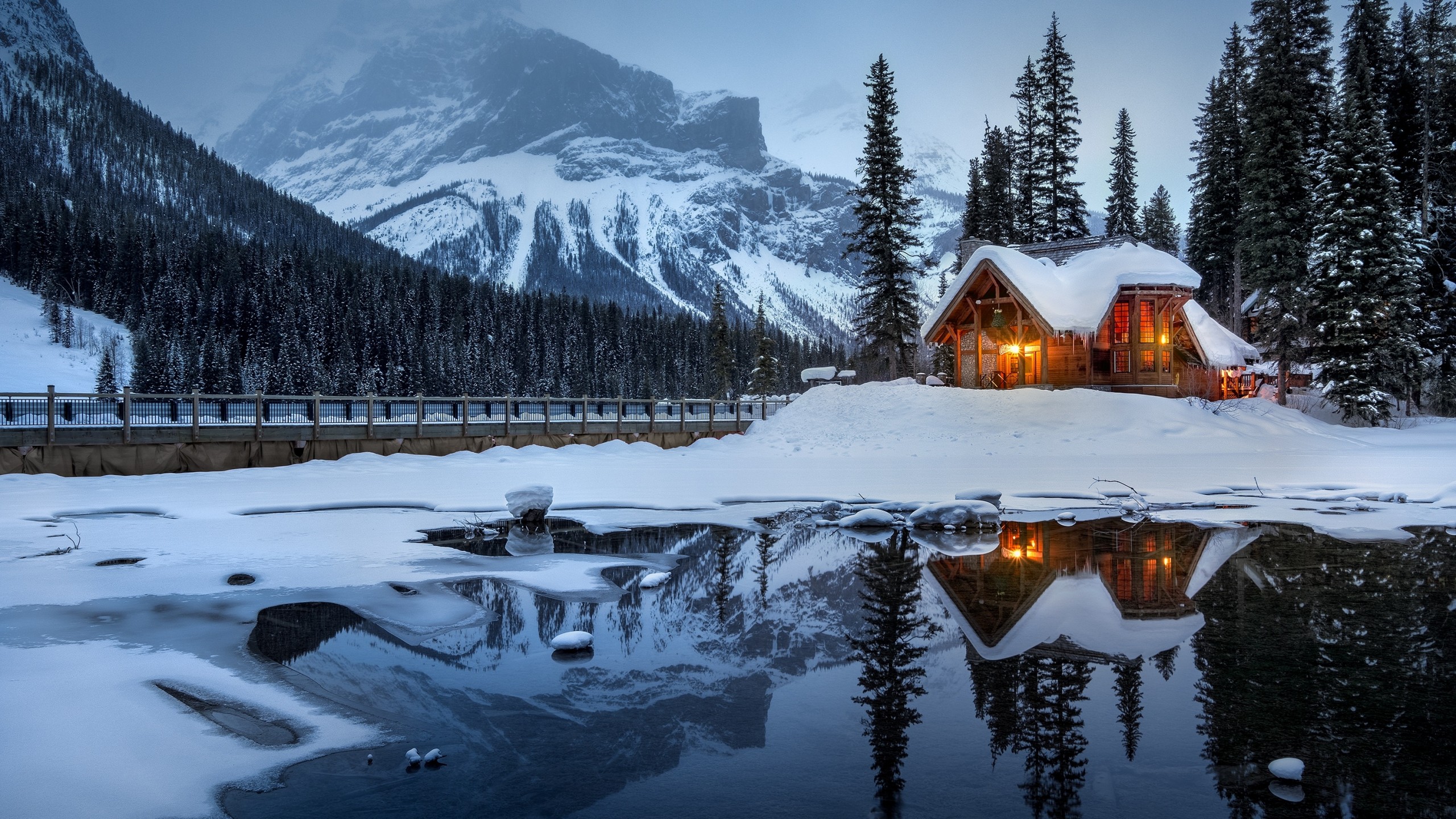 Обои 2560x1440 снег, гора, коттедж, зима, природа, WQHD, QHD, 16:9 картинка
