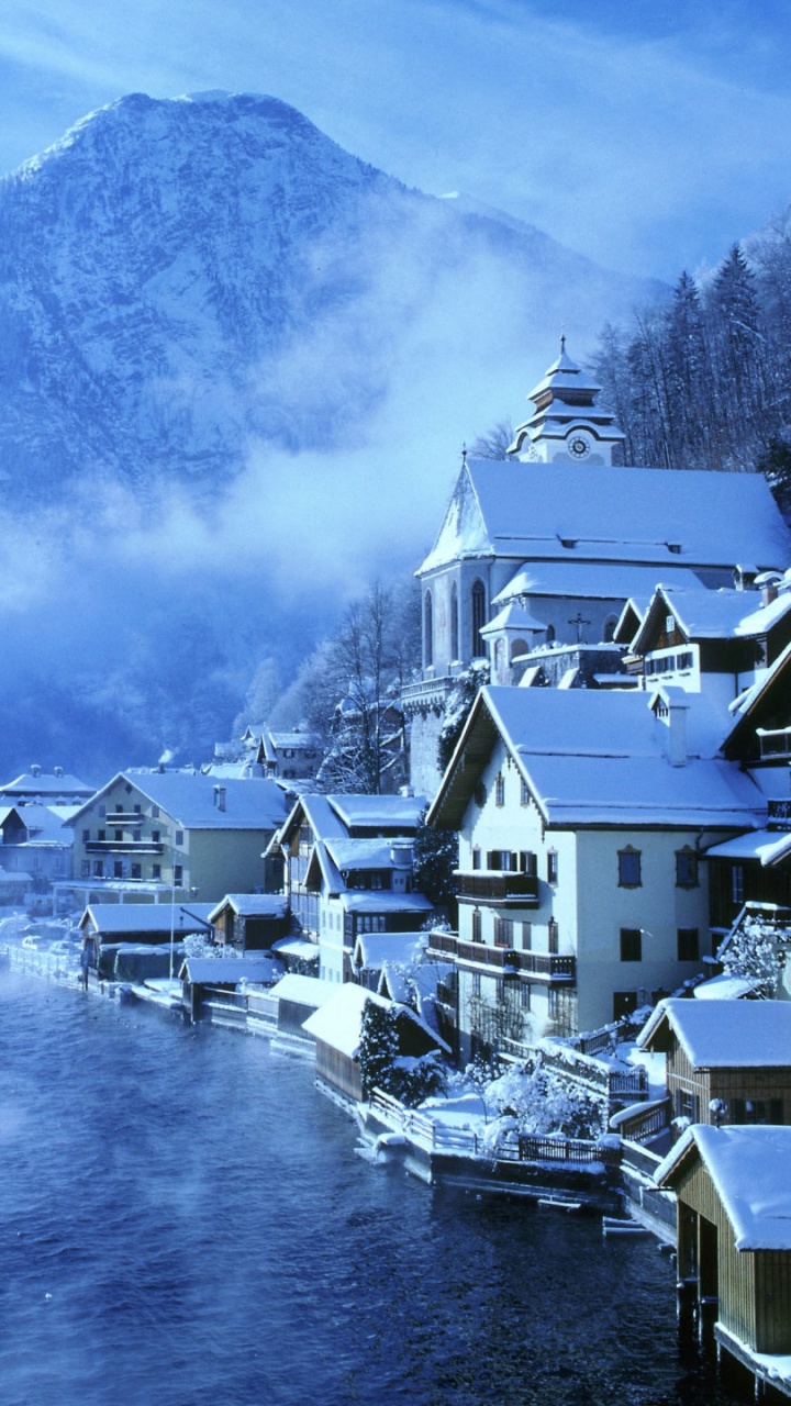 Обои гальштат, гора, снег, зима, природа для HD Samsung Galaxy S3/J3/J4/J5, Meizu M5, Sony Xperia L1/L2, заставка, 720x1280 картинка