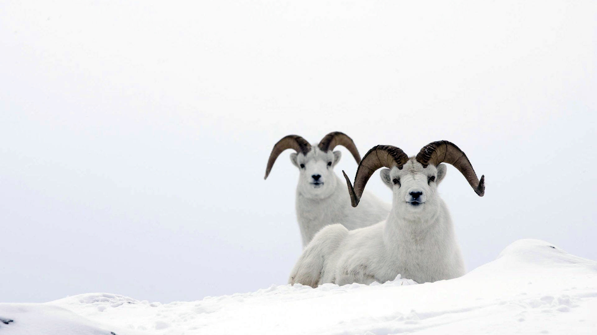Обои 1920x1080 овца, снег, живая природа, животные, рога, Full HD, HDTV, 1080p 16:9 картинка