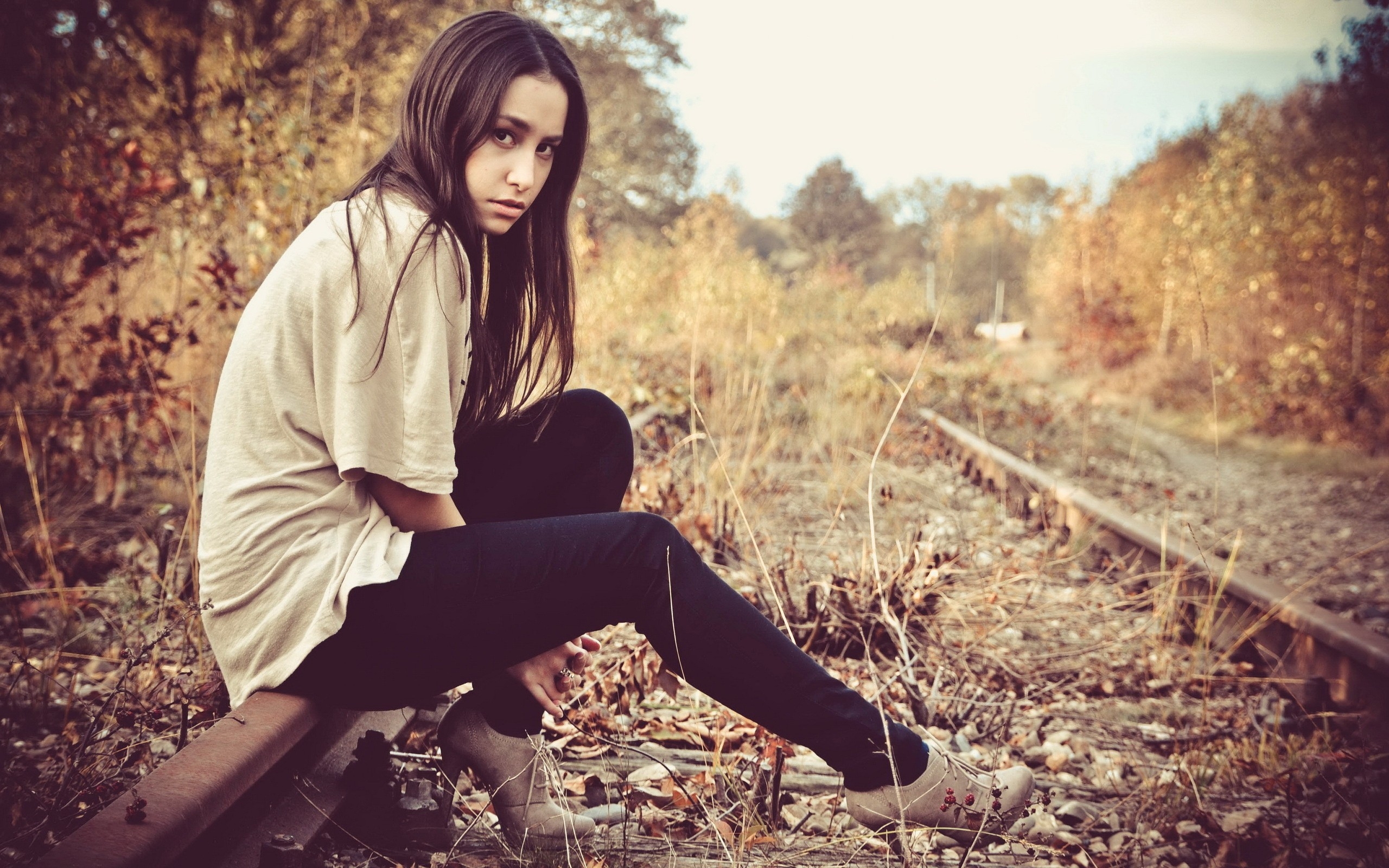 Обои красота, сидящий, сидит, девушка, осень, фото, заставка
