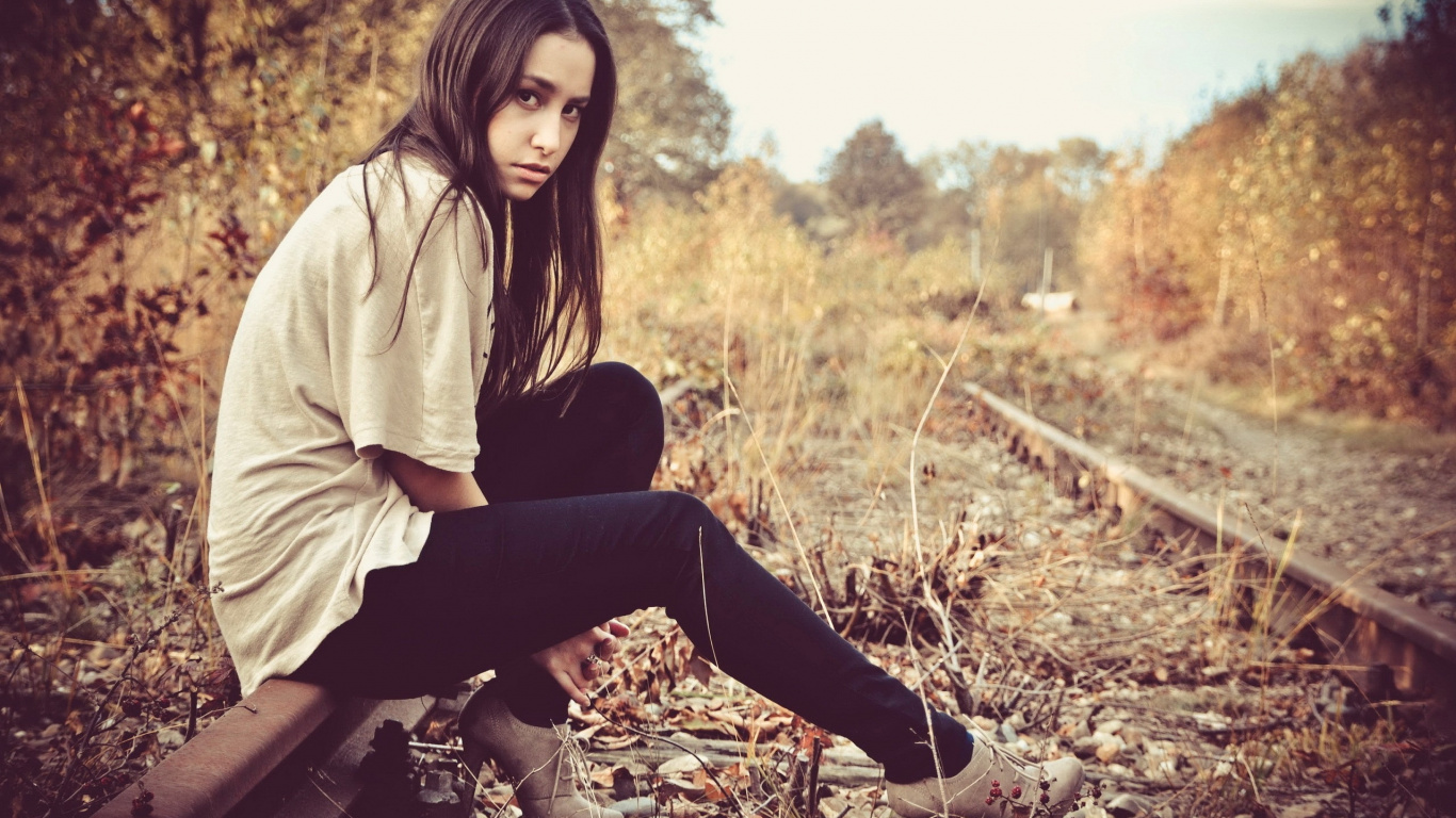 Обои 1366x768 красота, сидящий, сидит, девушка, осень, HD ready картинка