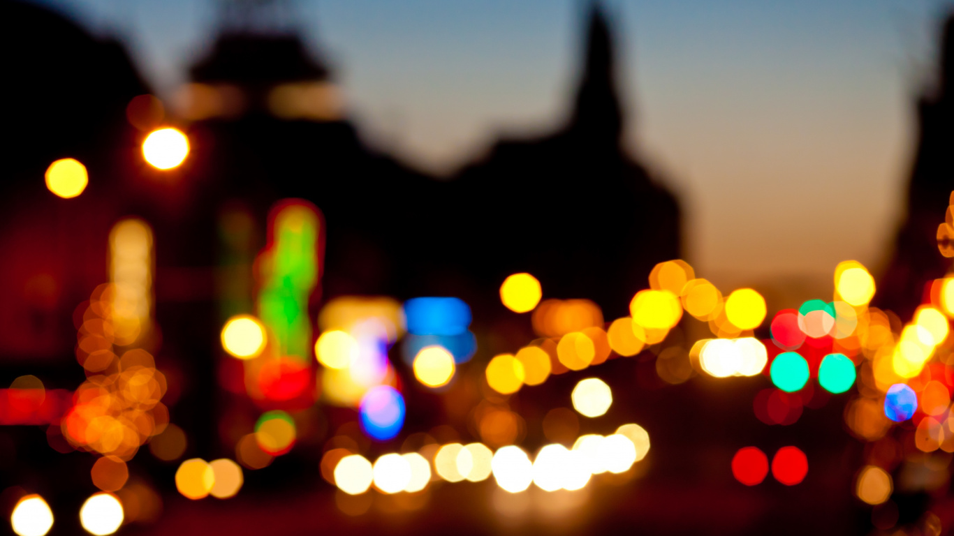 Обои 1366x768 боке, ночь, свет, освещение, город, HD ready картинка