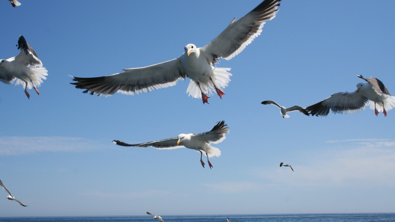 Обои 1366x768 чайки, полет, европейская серебристая Чайка, птица, морская птица, HD ready картинка