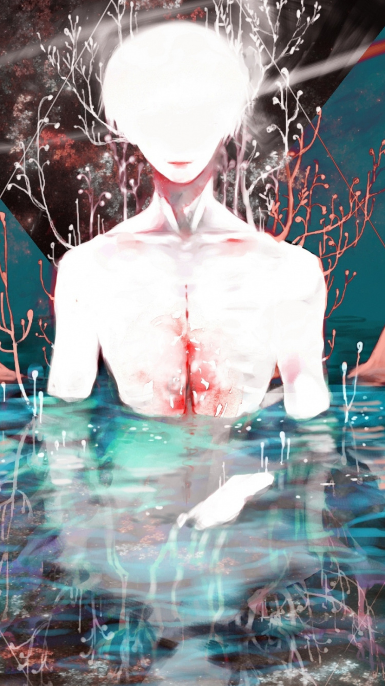 Обои Кен kaneki, Токио вурдалак, вода, графический дизайн, графика для iPhone 6, 6S, 7, 8, заставка, 750x1334 картинка