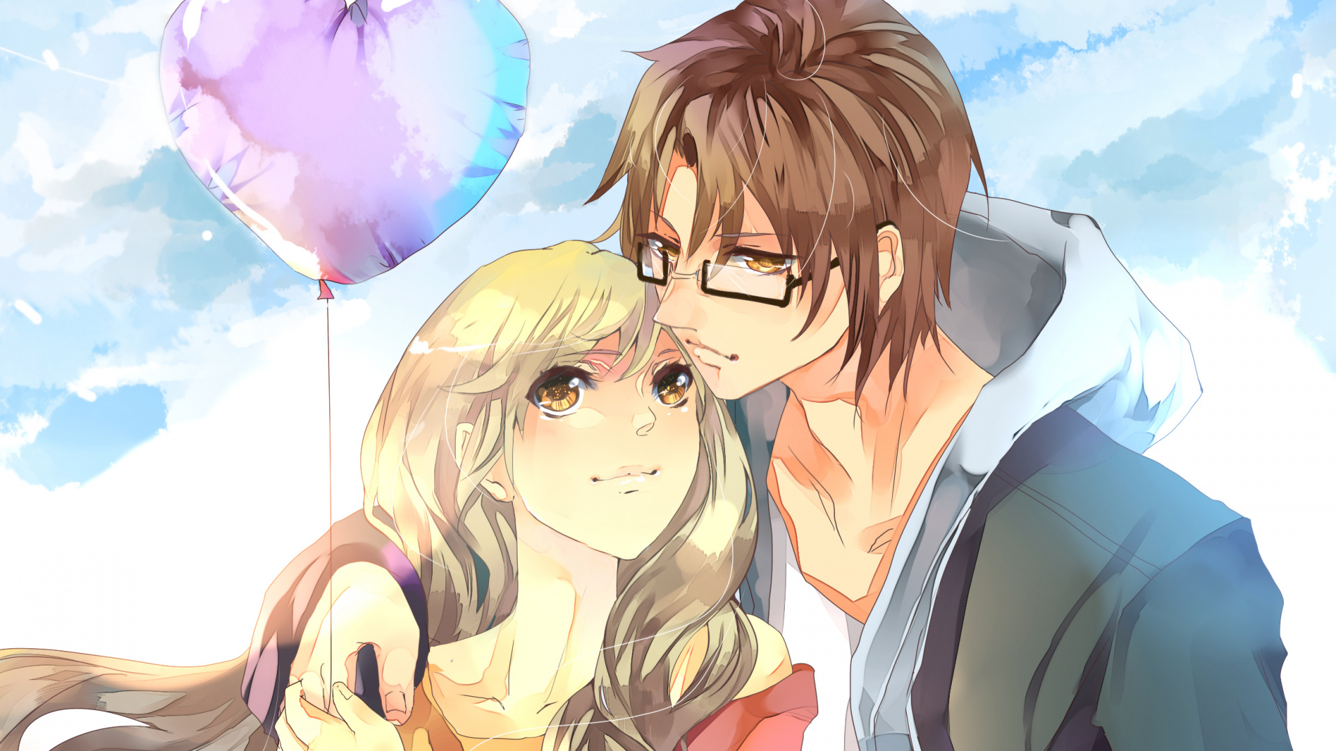 Обои 1920x1080 аниме, Манга, взаимодействие, даты аниме, Аниме Виртуальный, Full HD, HDTV, 1080p 16:9 картинка
