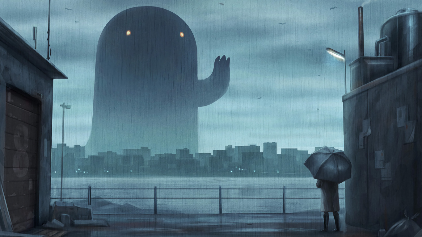 Обои 1366x768 монстр, иллюстрация, атмосфера, архитектура, музыка, HD ready картинка
