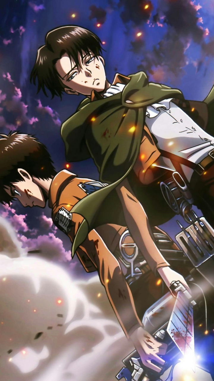 Обои эрен йегер, Леви, Микаса Акерман, нападение на титан, аниме для HD Samsung Galaxy S3/J3/J4/J5, Meizu M5, Sony Xperia L1/L2, заставка, 720x1280 картинка