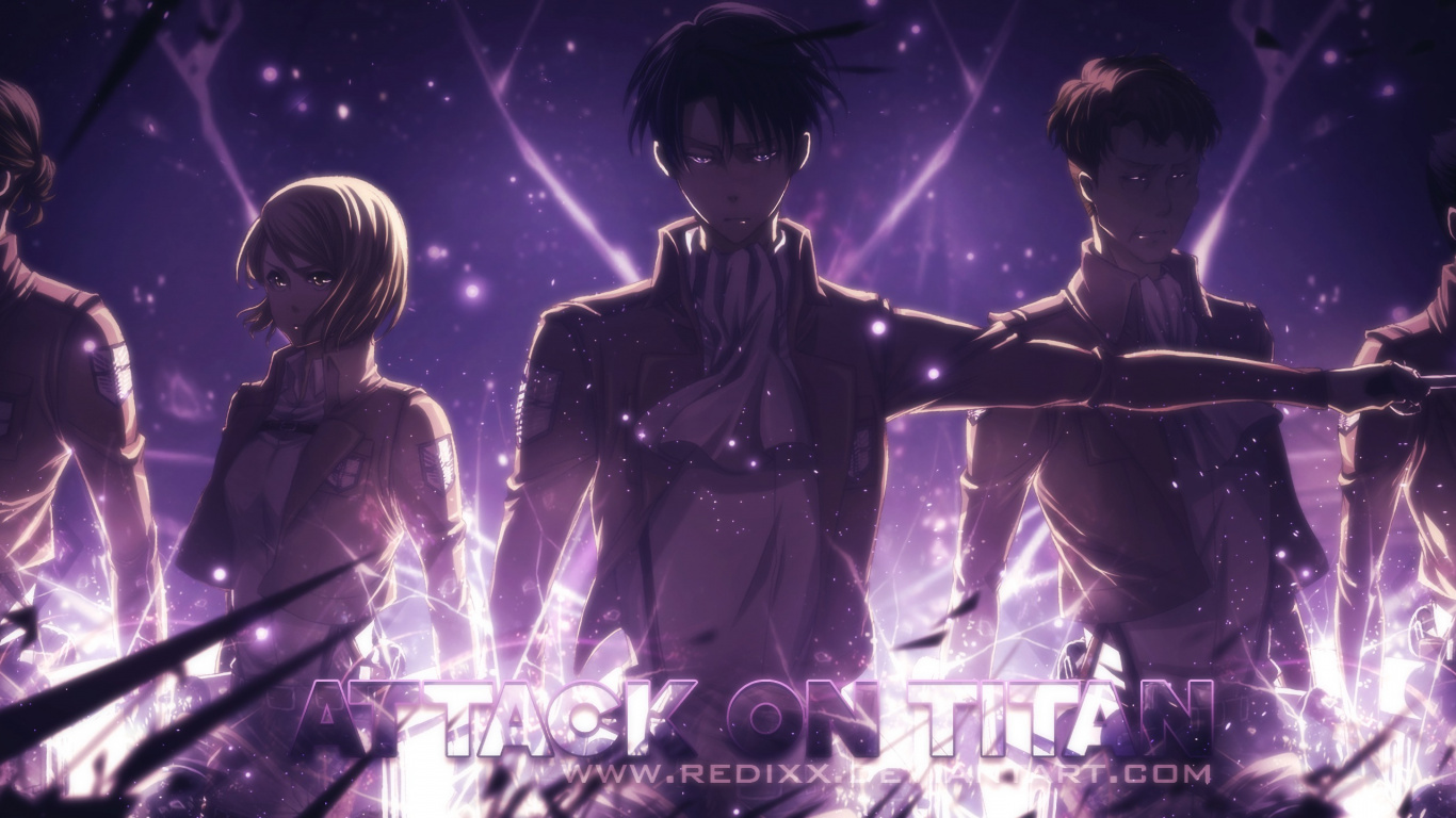 Обои 1366x768 эрен йегер, Леви, Микаса Акерман, нападение на титан, аниме, HD ready картинка