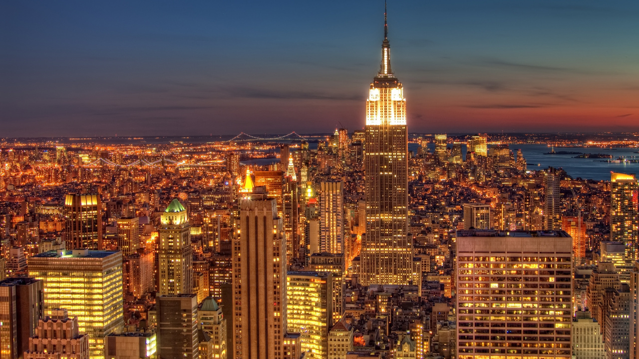Обои 1280x720 небоскреб, ночь, городской пейзаж, городской район, ориентир, HD, HDV, 720p, 16:9 картинка