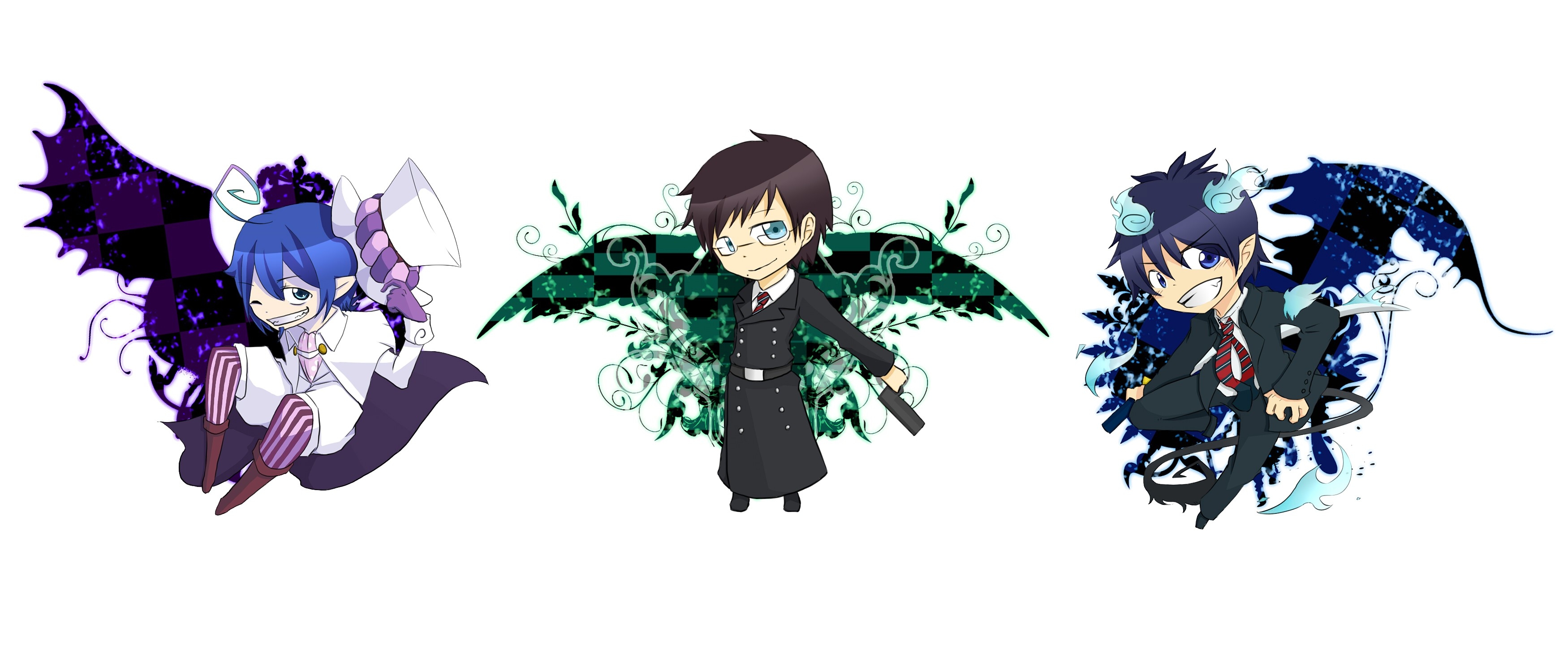 Обои Рин окумура, Юкио окумура, синий экзорцист, Чиби, иллюстрация, фото, заставка