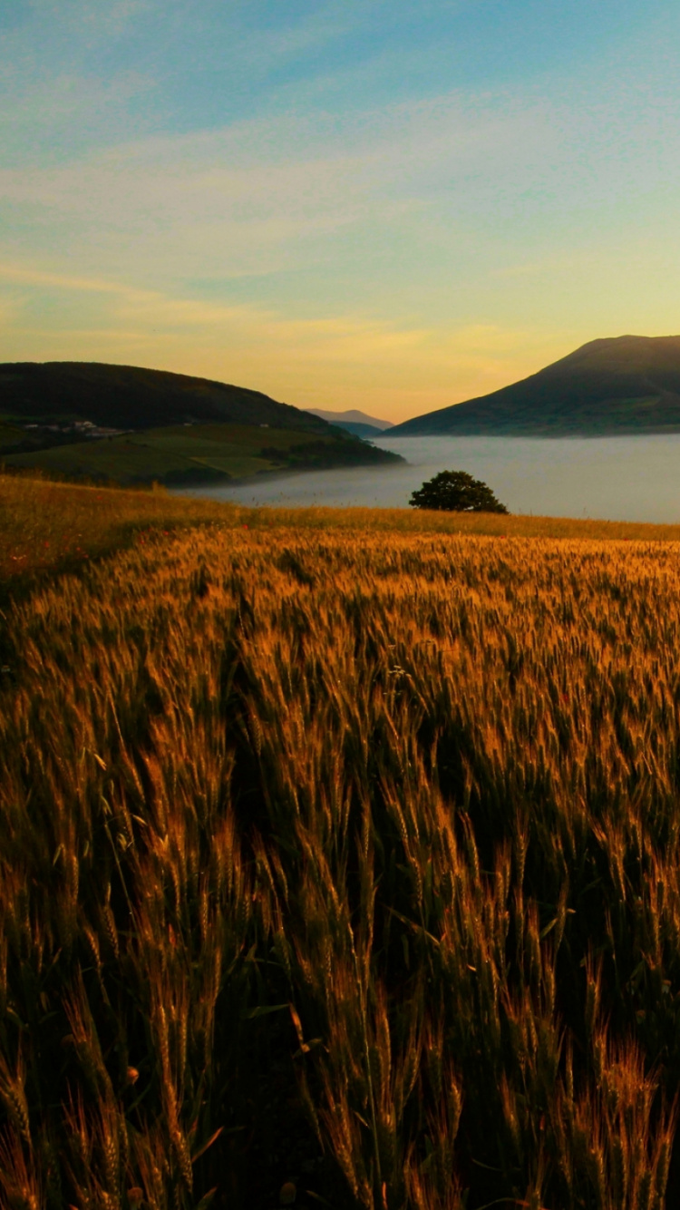 Обои природа, утро, закат, равнина, рассвет для iPhone 6, 6S, 7, 8, заставка, 750x1334 картинка