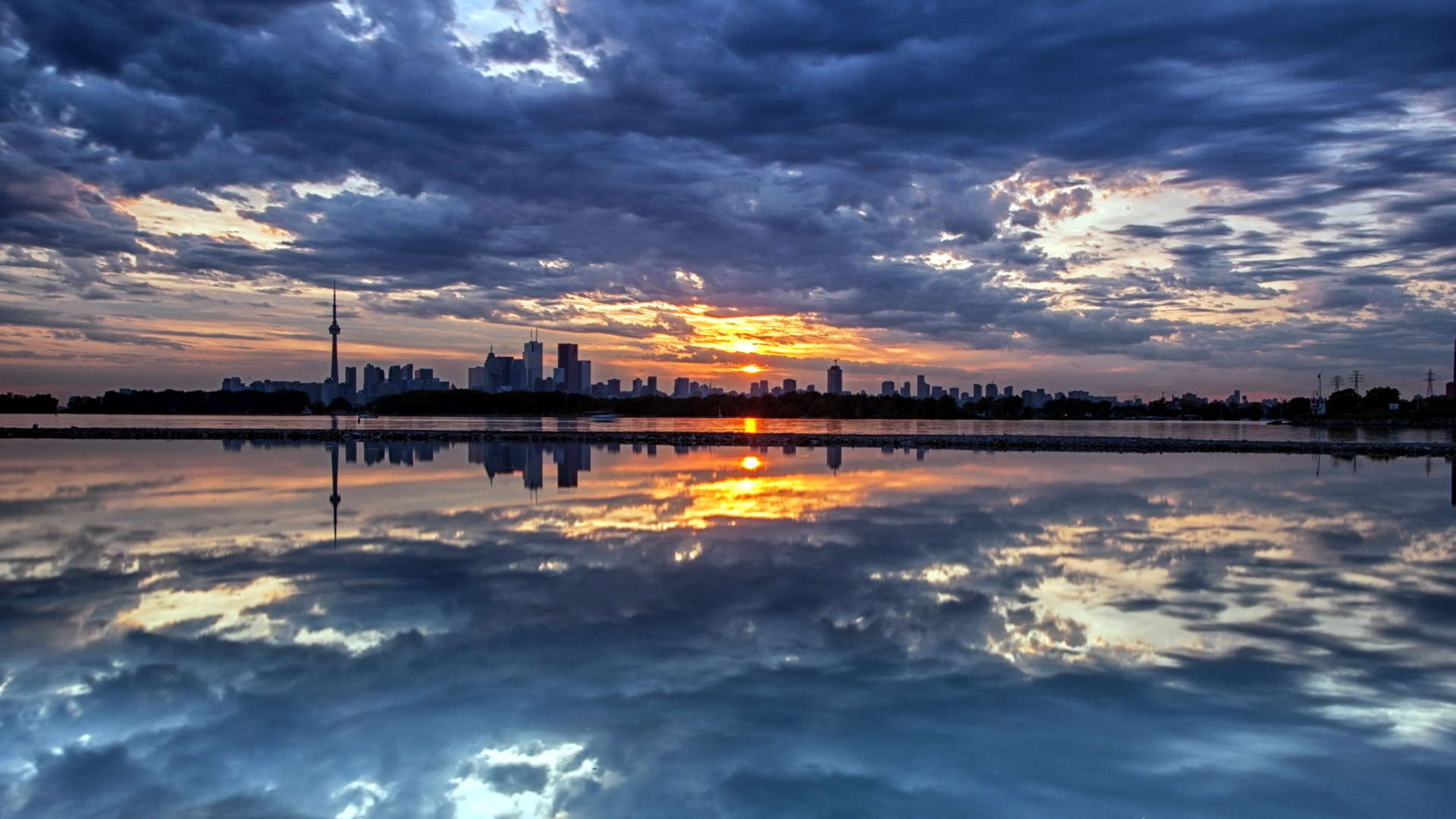 Обои 1920x1080 отражение, облако, вода, горизонт, закат, Full HD, HDTV, 1080p 16:9 картинка